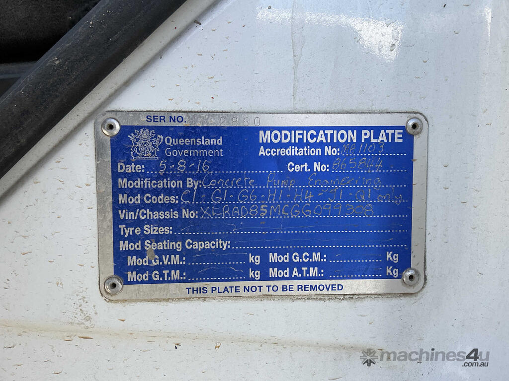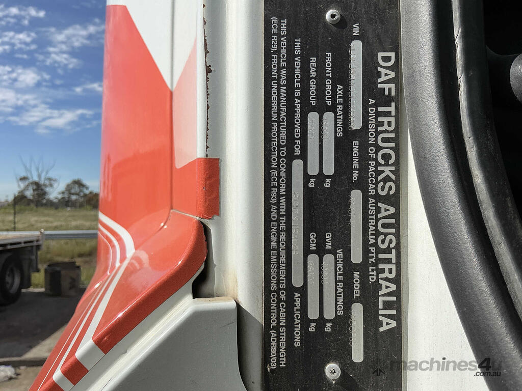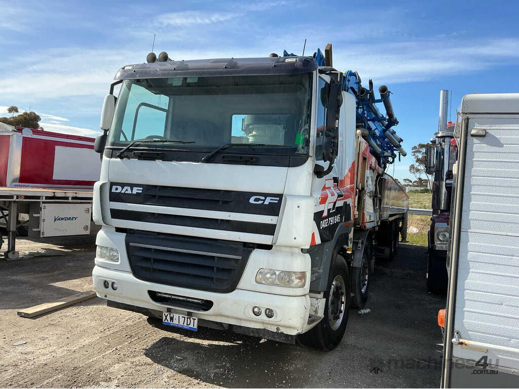 CP: 06/2016,DAF,CF 7585,Concrete Pump,Manual,Diesel,Odometer not visible,Hourmeter not visible,Colour: White,Rego. No: XW17DT VIC,VIN: XLRAD85MCGG099308,Length: 36 ft,GVM: 40000,GCM: 58000,Sold with No Plates,WOVR Status: WOVR N/A,Incident Type: Not Applicable
