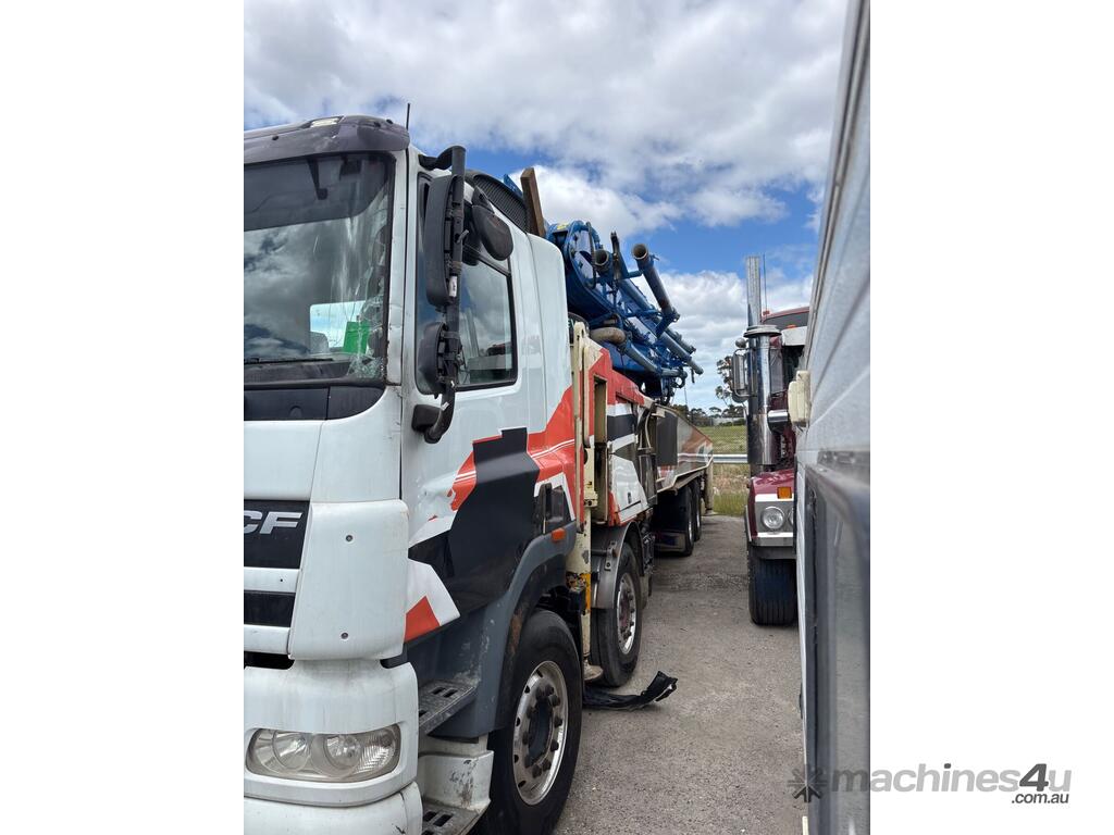 CP: 06/2016,DAF,CF 7585,Concrete Pump,Manual,Diesel,Odometer not visible,Hourmeter not visible,Colour: White,Rego. No: NP(XW17DT), Unregistered VIC,VIN: XLRAD85MCGG099308,Length: 36 ft,GVM: 40000,GCM: 58000,Sold with No Plates,WOVR Status: WOVR N/A,Incident Type: Impact