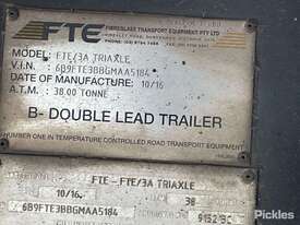CP: 10/2016,FTE,FTE3A,Tri Axle Refrigerated Pantech A Trailer,Hubometer not visible,Colour: White,Rego. No: NP(137UCX), Unregistered QLD,VIN: 6B9FTE3BBGMAA5184,Sold with No Plates,WOVR Status: WOVR N/A,Incident Type: Impact