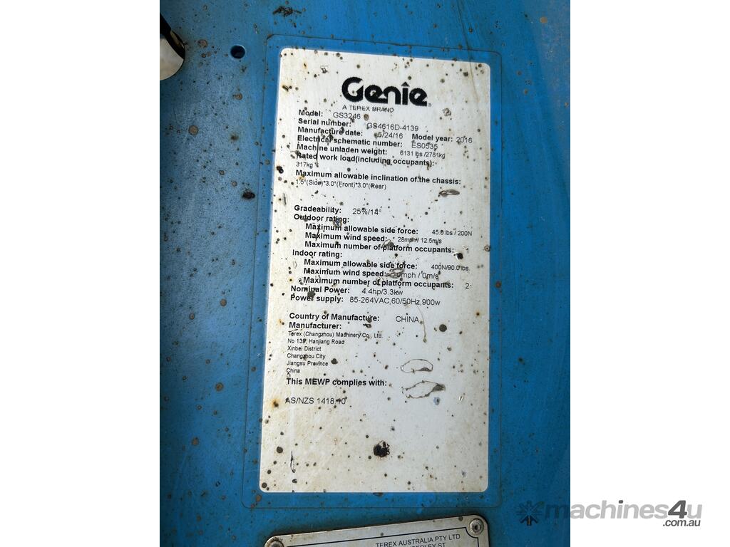 2016 Genie GS-3246 Scissor Lift :      $9,000 AUD($9,900 Inc. GST)