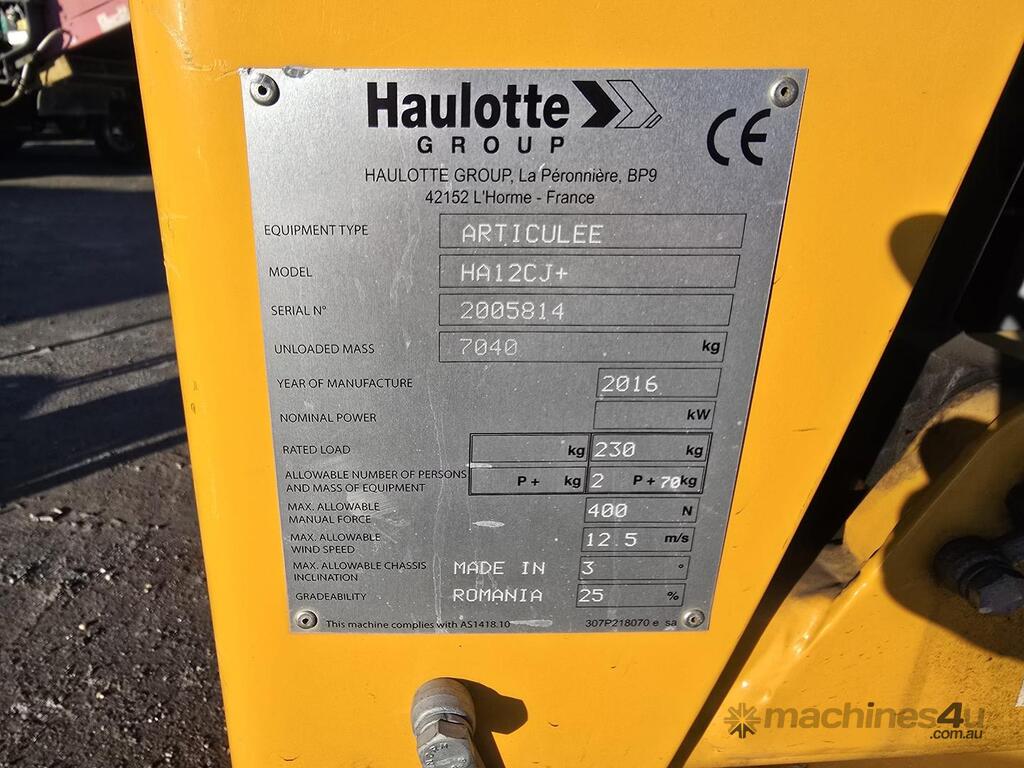2016 Haulotte HA12CJ+ :      $17,500 AUD($19,250 Inc. GST)