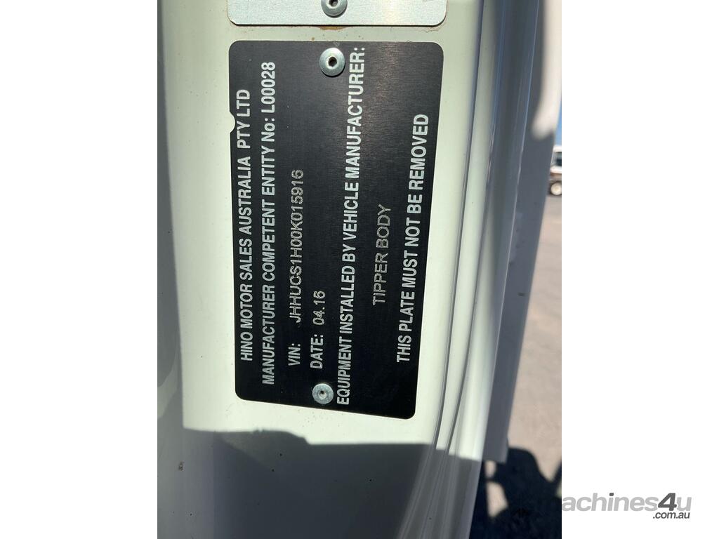 CP: 04/2016,Hino,300 716,Tipper Day Cab,Automatic,Spring,Engine #: N04CUS26004,N04C,4 Cyl,Diesel Turbo,208026 (Kms. Showing on Odometer),Hourmeter not visible,Colour: White,Rego. No: NP(XP19GZ), Unregistered NSW,VIN: JHHUCS1H00K015916,Key No: 513S,Length: 6.1 m,GVM: 6500,GCM: 7795,Sold with No Plates,Key No: 513S
