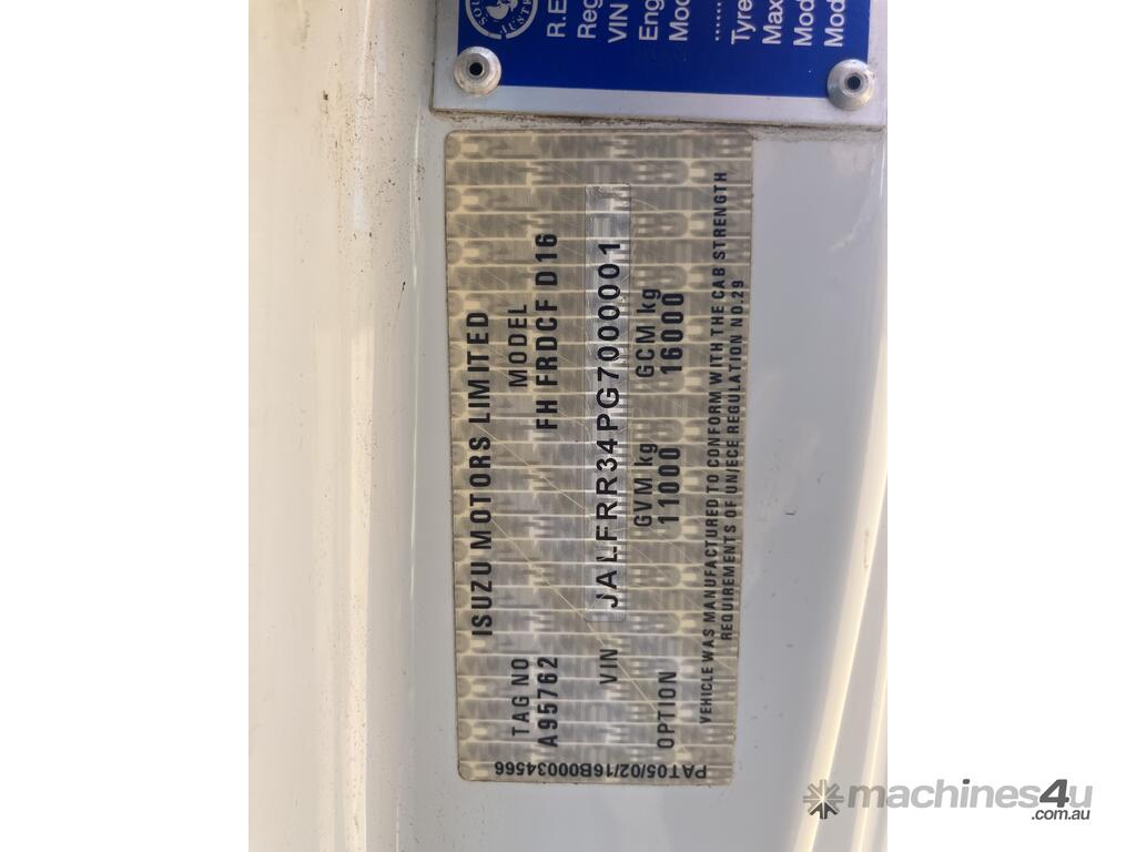 CP: 09/2016,Built: 09/2016,Isuzu,FRD 110-260,Flat Bed Tray,Manual,Diesel,6 Gears,757662 (Kms. Showing on Odometer),11266 (Hrs. Showing on Hour meter),Colour: White,Rego. No: XO59KV NAT,Rego expiry: 08/03/2026,VIN: JALFRR34PG7000001,Plates to All