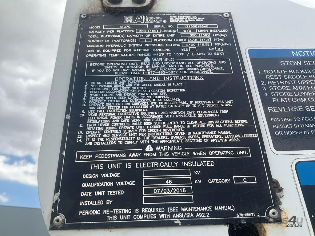 CP: 06/2016,Isuzu,FRR 107-210,EWP,Automatic,Leaf Spring Suspension,6 Cyl,Diesel,207437 (Kms. Showing on Odometer),6758 (Hrs. Showing on Hour meter),Colour: White,Rego. No: NP(1IZ1VM), Unregistered VIC,VIN: JALFRR90KG7000108,Key No: 52,GVM: 10700,GCM: 16000,Sold with No Plates,Key No: 52