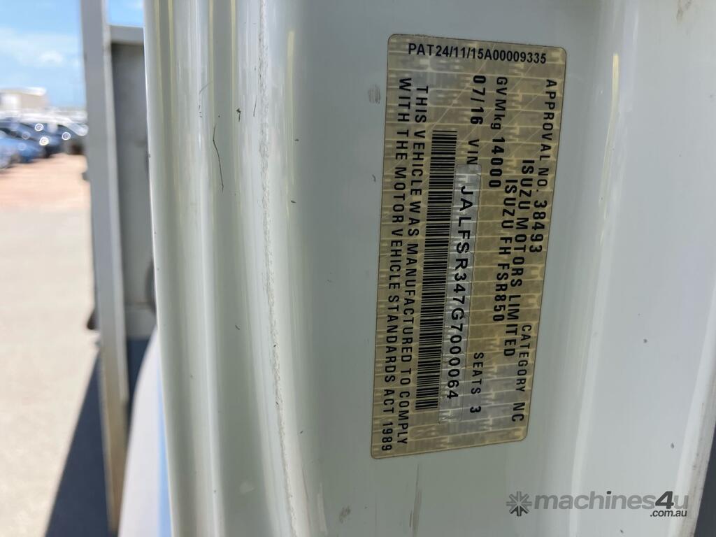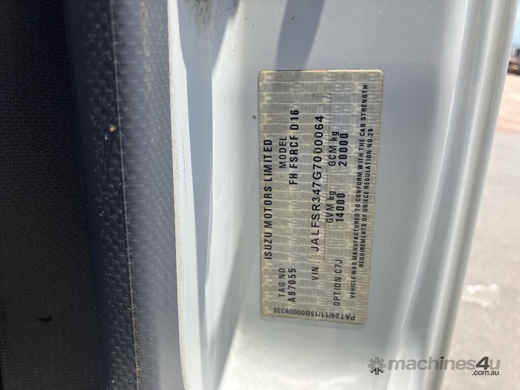 CP: 07/2016,Isuzu,FSR 140-260,Tipper,Manual,Spring,6 Cyl,Diesel,6 Gears,46181 (Kms. Showing on Odometer),4726 (Hrs. Showing on Hour meter),Colour: White,Rego. No: NP(467XIV), Unregistered QLD,VIN: JALFSR347G7000064,Length: 8 m,GVM: 14000,GCM: 20000,Sold with No Plates