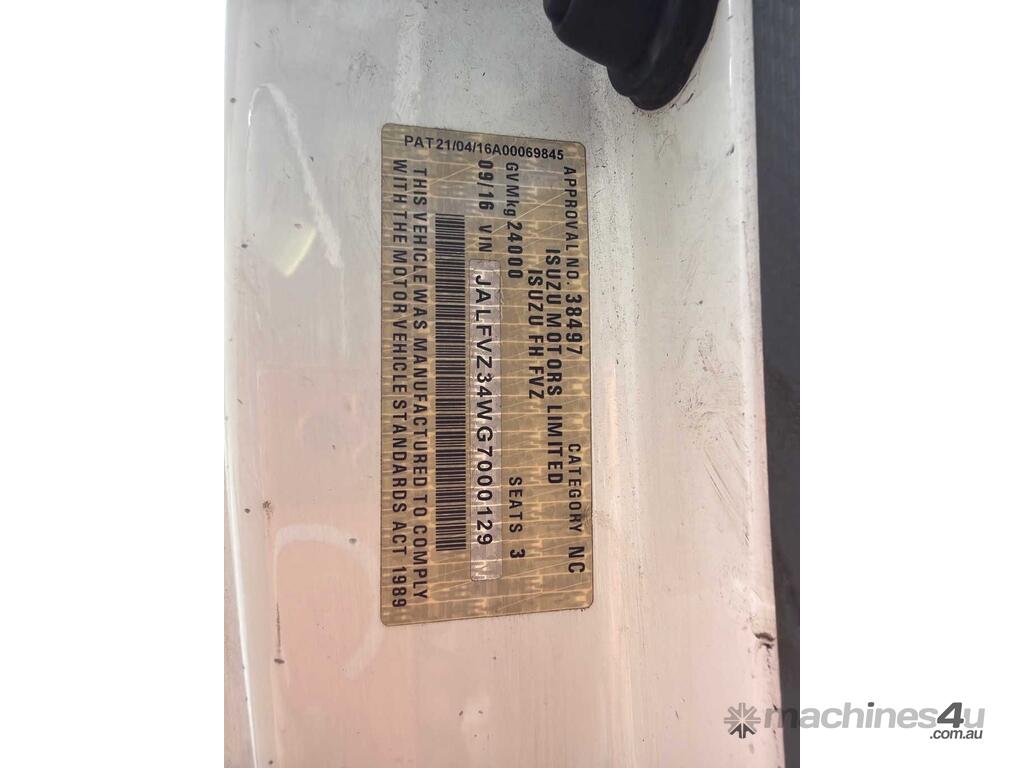 CP: 09/2016,Isuzu,FVY 240-300,Crane Truck (Table Top),Manual,Air Bag,6 Cyl,Diesel Turbo,244848 (Kms. Showing on Odometer),Hourmeter not visible,Colour: White,Rego. No: XP93NL NSW,VIN: JALFVZ34WG7000129,Length: 11.5 M,GVM: 24000,GCM: 36000,Sold with No Plates