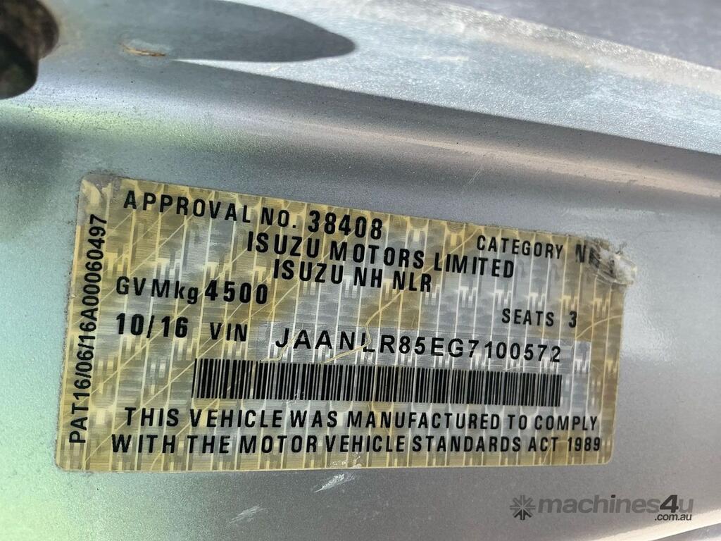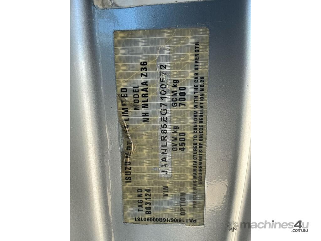CP: 10/2016,Isuzu,NLR 45-150,Table Top,Automatic,Spring ,4 Cyl,Diesel,Turbo,298868 (Kms. Showing on Odometer),Hourmeter not visible,Colour: Silver,Rego. No: NP(CJ56QP), Unregistered NSW,VIN: JAANLR85EG7100572,Length: 12 ft,GVM: 4500,GCM: 7000,Sold with No Plates,WOVR Status: Statutory Write-Off,Incident Type: Impact