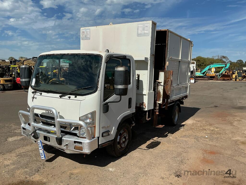 CP: 08/2016,Isuzu,NPR 65 190,Side Loading Bin Lifter Tipper,Manual,Leaf Spring,4 Cyl,Diesel Turbo,6 Gears,74176 (Kms. Showing on Odometer),Hourmeter not visible,Colour: White,Rego. No: 1GDT303 WA,Rego expiry: 31/07/2026,VIN: JAANPR75HF7109211,Key No: 494,Length: 6 m,GVM: 6500,GCM: 10000,Plates to All,Key No: 494