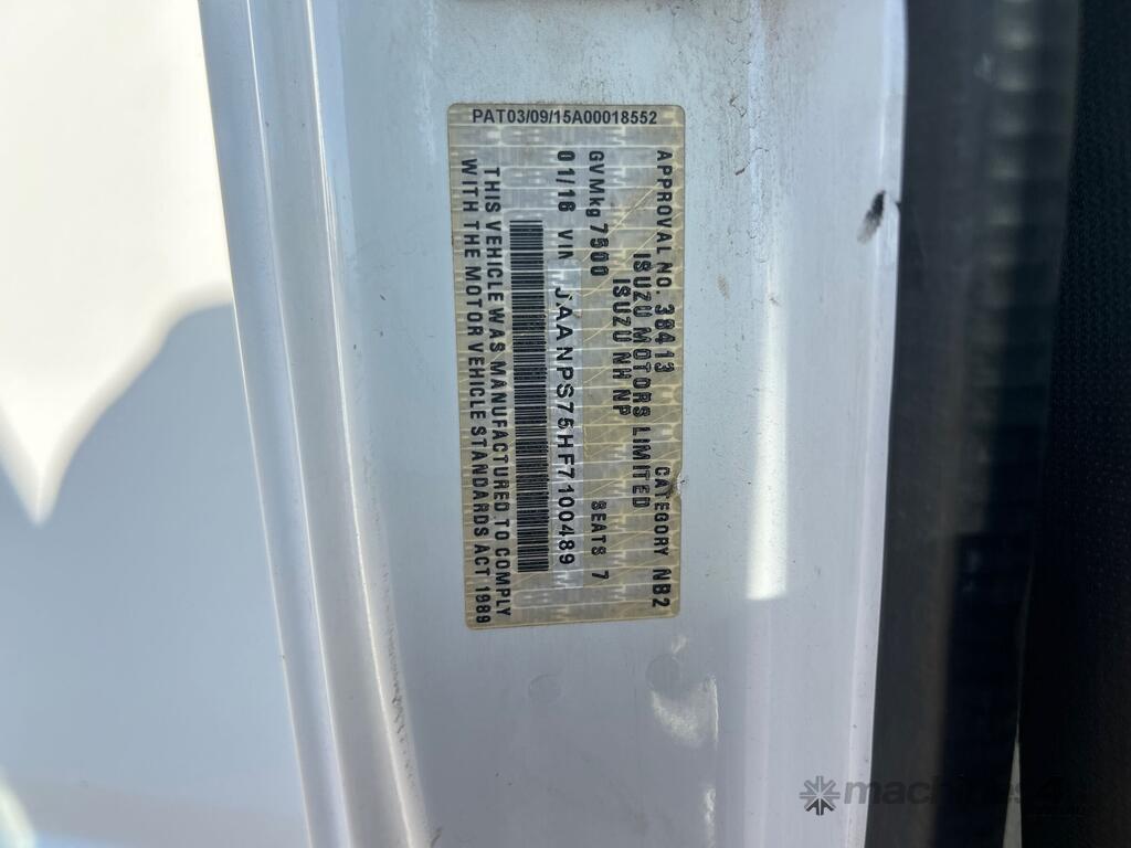 CP: 01/2016,Isuzu,NPS 65-155,Crew Cab Service Body,Manual,Spring,Isuzu,4 Cyl,Diesel,5 Gears,61876 (Kms. Showing on Odometer),Hourmeter not visible,Colour: White,Rego. No: NP(657WEJ), Unregistered QLD,VIN: JAANPS75HF7100489,Key No: T19,Length: 6.4 m,GVM: 7500,GCM: 11000,Sold with No Plates,Key No: T19