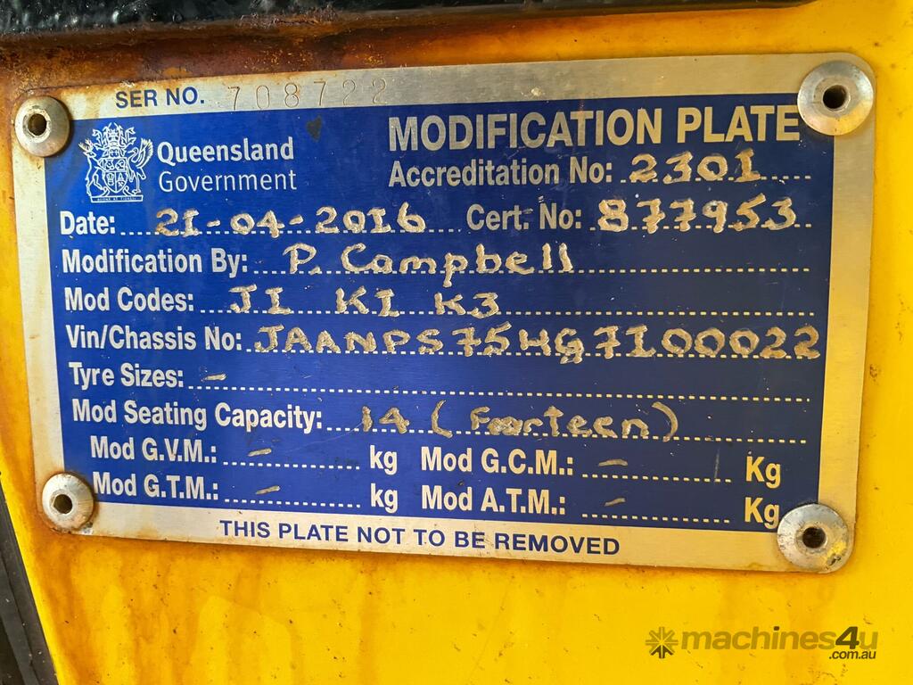 CP: 02/2016,Isuzu,NPS 75-155,Bus,Manual,Leaf Springs ,4 Cyl,Diesel,111162 (Kms. Showing on Odometer),Hourmeter not visible,Colour: White,Rego. No: 829065 NT,VIN: JAANPS75HG7100022,Length: 7.6 m,GVM: 7500,GCM: 11000,Sold with No Plates,WOVR Status: WOVR N/A,Incident Type: Not Applicable
