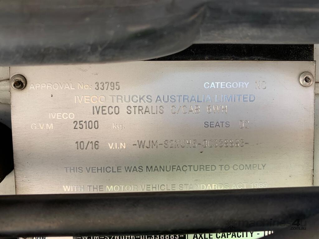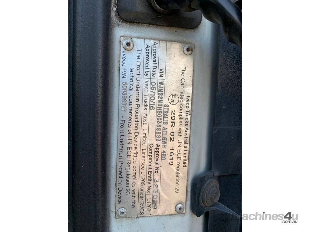 CP: 10/2016,Iveco,Stralis 460,6x4 Prime Mover,Automatic,airbags,6 Cyl,Diesel,Odometer not visible,Hourmeter not visible,Colour: White,Rego. No: NP(XQ56MA), Unregistered QLD,VIN: WJMS2NUH60C338883,GVM: 25100,GCM: 50000,Sold with No Plates,WOVR Status: WOVR N/A,Incident Type: Impact