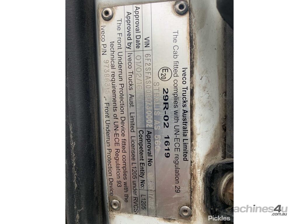CP: 02/2016,Iveco,Stralis 560,Prime Mover,Odometer not visible,Hourmeter not visible,Rego. No: XT61BF TAS,VIN: 6F2SFA900GDZ30002,Sold with No Plates,WOVR Status: WOVR N/A,Incident Type: Impact