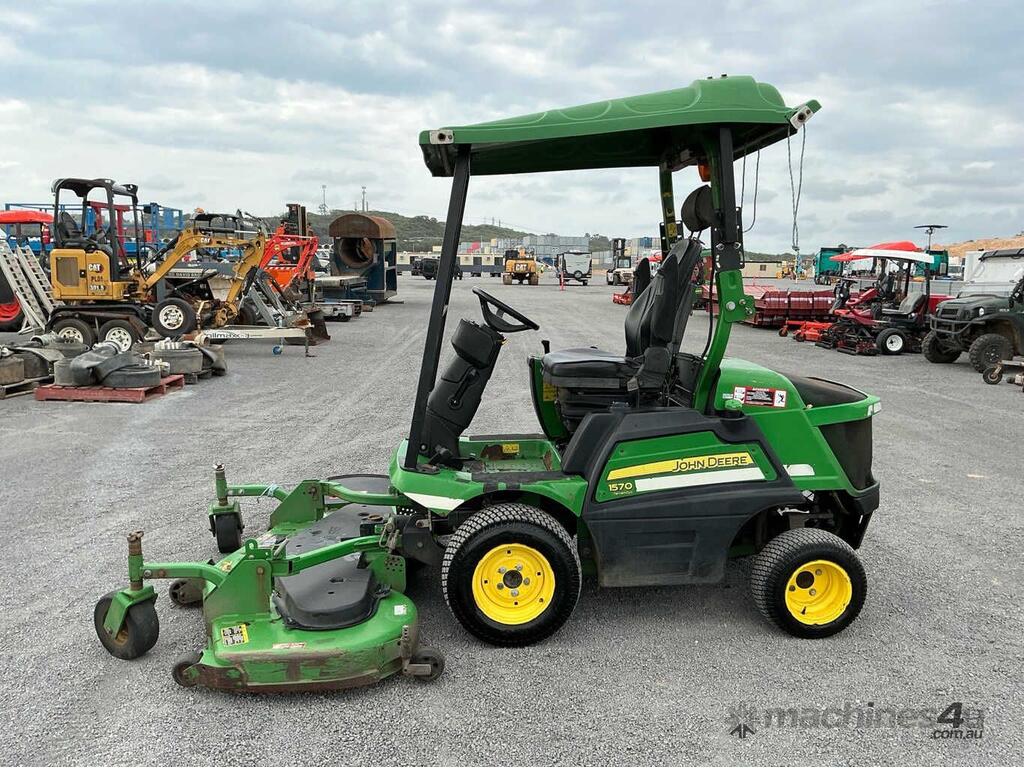 CP: CIRCA 2016,John Deere,1570 Terrain Cut,Ride On Mower (Out Front),Engine #: CH3V13D347601,3 Cyl,Diesel,Odometer not visible,1225 (Hrs. Showing on Hour meter),Colour: Green,Unregistered,Serial No: 1TC1570DCGS020276,Sold with No Plates,Key No: 35E