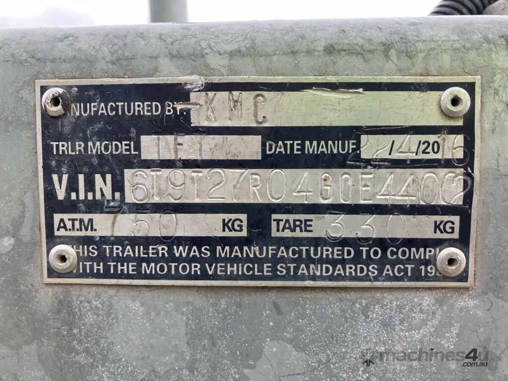 CP: 04/2016,KMC,Single Axle Plant Trailer,Hubometer not visible,Colour: Galvanised,Rego. No: NP(TB04QP), Unregistered,VIN: 6T9T27R04G0E44002,Sold with No Plates