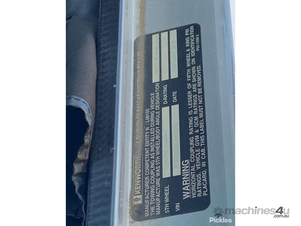 CP: 02/2016,Kenworth,K200 Series,6x4 Sleeper Cab Prime Mover,Manual,6 Cyl,Diesel,Odometer not visible,Hourmeter not visible,Colour: White,Rego. No: NP(XV32EU), Unregistered VIC,VIN: 6F5000000GA456053,GVM: 26500,Sold with No Plates,WOVR Status: WOVR N/A,Incident Type: Impact