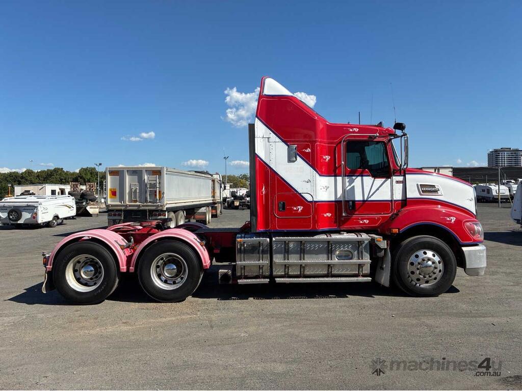 CP: 06/2016,Kenworth,T409,Prime Mover,Automatic,Airbag,6 Cyl,Diesel,508184 (Kms. Showing on Odometer),34789 (Hrs. Showing on Hour meter),Colour: Red,Rego. No: XQ18BG,VIN: 6F5000000GA456342,Key No: 144,GVM: 27600,GCM: 97000,Sold with No Plates,Key No: 144