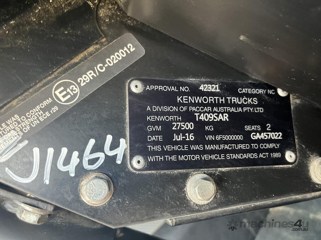 CP: 07/2016,Built: 07/2016,Kenworth,T409SAR,Prime Mover Day Cab,Automatic,Airbag,Engine #: 79913671,Cummins ISX E5,6 Cyl,Diesel Turbo,134073 (Kms. Showing on Odometer),19060 (Hrs. Showing on Hour meter),Colour: White,Rego. No: NP(XB69PM), Unregistered NAT,VIN: 6F5000000GA457022,GVM: 27500,GCM: 97000,Sold with No Plates