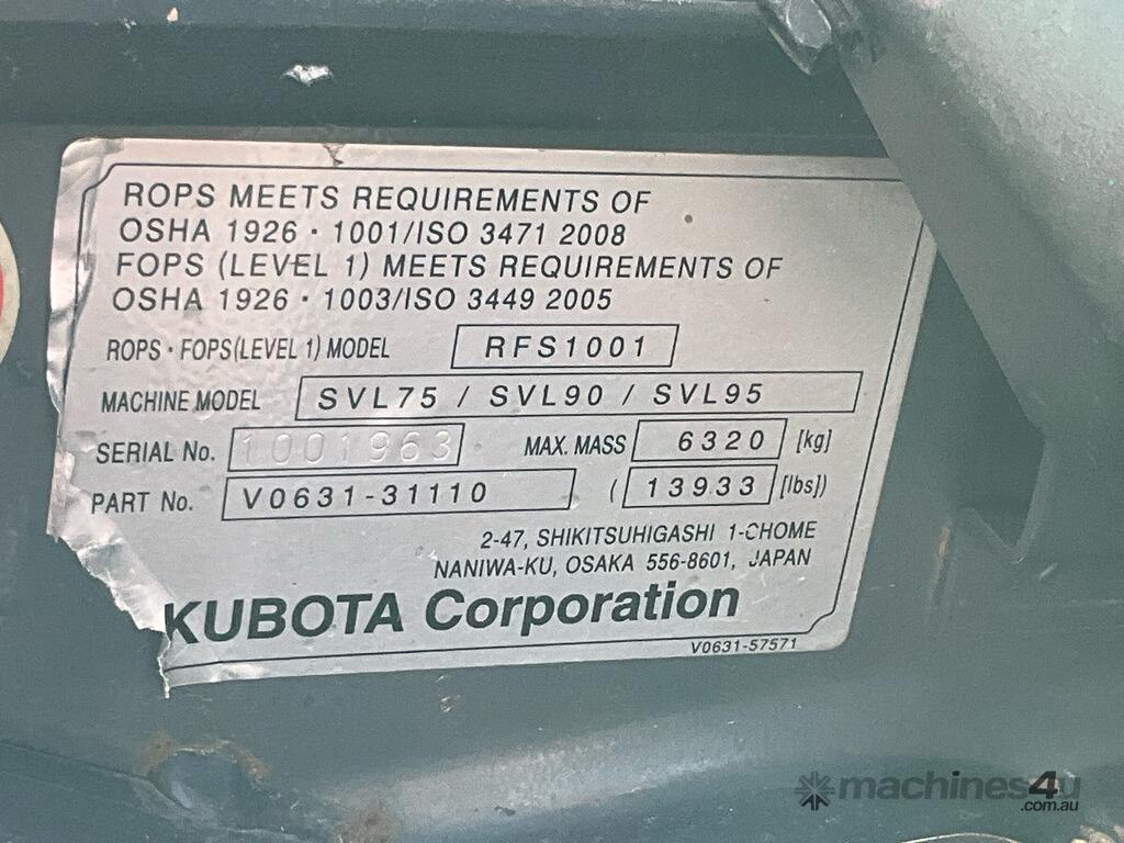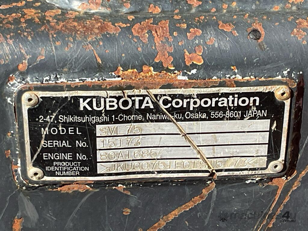 CP: CIRCA 2016,Kubota,SVL75,Skid Steer (Tracked),Engine #: 8GA1685,4 Cyl,Diesel Turbo,Odometer not visible,4211 (Hrs. Showing on Hour meter),Colour: Orange,Unregistered,Chassis: 15173,Serial No: JKUC0751E01S15173,ROPS No: 1001963,FOPS No: 1001963,Sold with No Plates,Key No: 278E