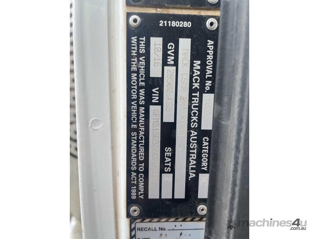 CP: 10/2016,Mack,Metro Liner CSMR,Water Cart,Automatic,Air Bag Suspension ,Engine #: 22193566,Cummins ISLe5,6 Cyl,Diesel,238564 (Kms. Showing on Odometer),Hourmeter not visible,Colour: White,Rego. No: NP(XN02ED), Unregistered NAT,VIN: 6FMS15D55GD807808,Key No: 15,Length: 9.5 m,GVM: 28500,GCM: 33000,Sold with No Plates,Key No: 15