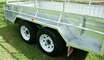 Specifications Internal Trailer Size 3000mm x 1530mm x 300mm Side 425mm High, Fully Welded Drawbar 1800mm, 150mmx50mm RHS Removable Front and Rear Drop Down Gates Welded Ladder Racks Holders 2 Heavy Duty Locking Points On Drawbar Flooring Checker Plate Floor Tie Down Rails All Around 70mm x 50mm SHS Reinforced Under Floor From Left To Right Front To Back Fully Step-up Platforms On Both Sides Axle Dual Axle, 50mm Round Solid Axle With Parallel Bearings Brake 12 Electric Drum Brake On Four Wheels Springs 60mm 7 Leaf 7mm Rocker Roller Wheel Size 15 Tyre Size 195 15 Coupling 50mm 3500kg ....