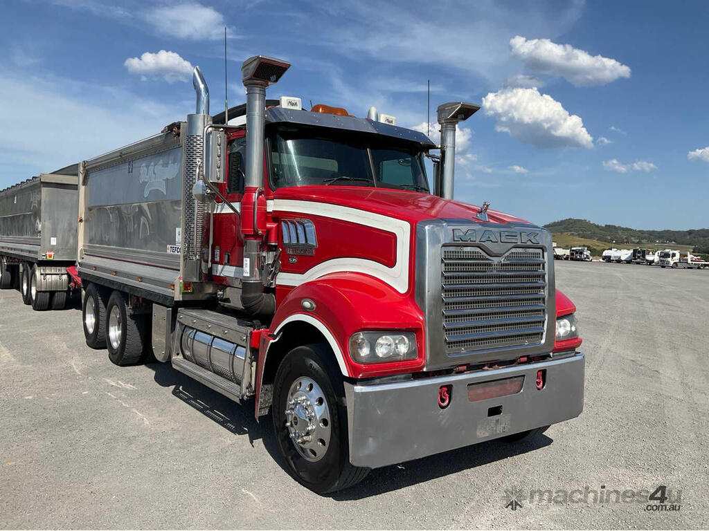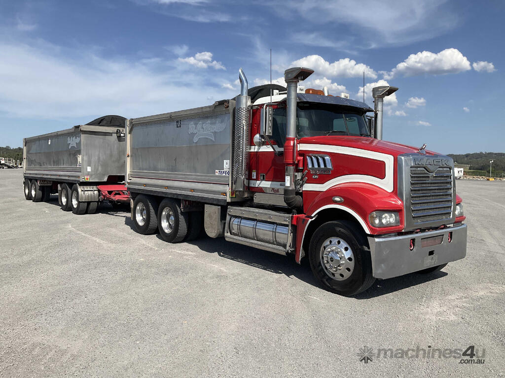 CP: 04/2016,Mack,Trident,Tipper & Quad Dog Combination,Automatic,Airbag ,Engine #: 591177,MP8,6 Cyl,Diesel,560256 (Kms. Showing on Odometer),14636 (Hrs. Showing on Hour meter),Colour: Red,Unregistered,VIN: 6FMM12H69GD807179,Key No: 352E,Length: 7.9 undefined,GVM: 26000,GCM: 70000,Sold with No Plates,Key No: 352E