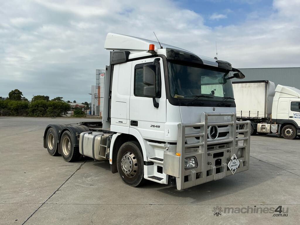 CP: 02/2016,Mercedes Benz,Actros 2648,Prime Mover,Automatic,Air Bag Suspension,Mercedes Benz,6 Cyl,Diesel,703608 (Kms. Showing on Odometer),18737 (Hrs. Showing on Hour meter),Colour: White,Rego. No: XV53VT VIC,VIN: WDB9342412L963041,Key No: 48,GVM: 26000,GCM: 70000,Sold with No Plates,Key No: 48