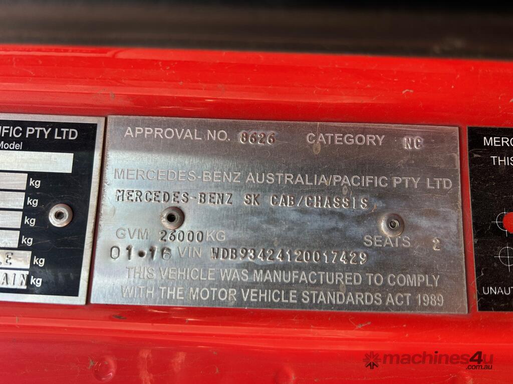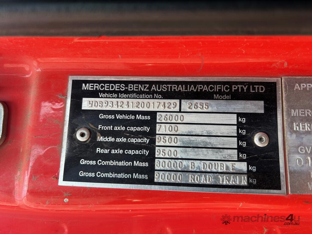 1/2016 Mercedes Benz Actros 2655 SK 6x4 cab chassis prime mover, 550HP V8 diesel engine, 12 speed automatic transmission, air bag suspension, full electrics, sleeper , sliding drawer cooler, Mochila cooling system, radio, cb radio, 1 x key. KLM: 722683 ( showing )