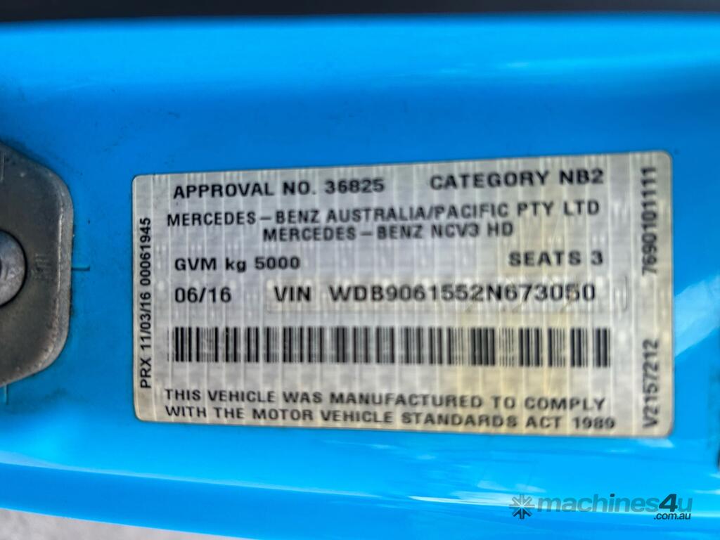 CP: 06/2016,Mercedes Benz,Sprinter,Cab Chassis,Automatic,Spring,Diesel,248649 (Kms. Showing on Odometer),Hourmeter not visible,Colour: Blue,Rego. No: 190WWE QLD,VIN: WDB9061552N673050,Key No: 134,GVM: 5000,GCM: 7000,Sold with No Plates,Key No: 134