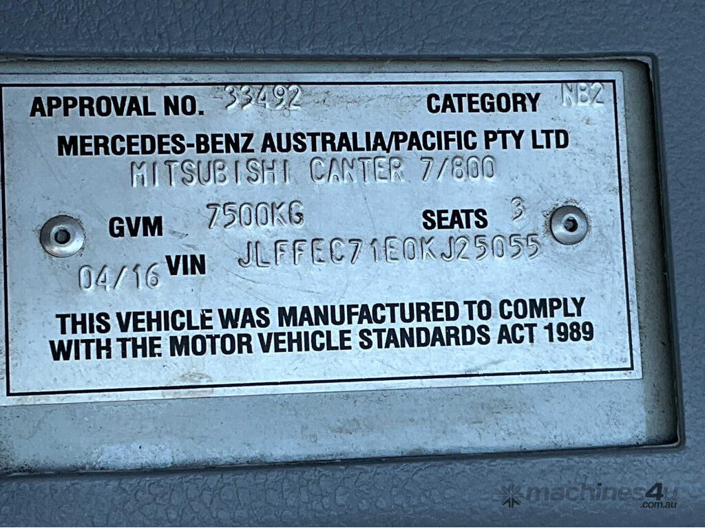 CP: 04/2016,Mitsubishi,FEC71 Canter 815,Tipper,Manual,Spring,Engine #: 4P10C03163,4 Cyl,Diesel Turbo,5 Gears,62885 (Kms. Showing on Odometer),Hourmeter not visible,Colour: White,Rego. No: CH97SJ NSW,Rego expiry: 01/09/2026,VIN: JLFFEC71E0KJ25055,Key No: 410E,Length: 6.3 m,GVM: 7500,GCM: 11000,Sold with No Plates,Key No: 410E