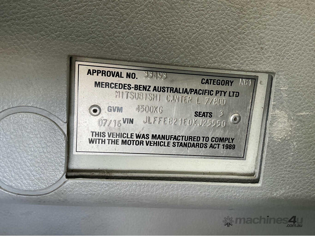 CP: 07/2016,Mitsubishi Fuso,Canter 515,Pantech,Automatic,Diesel,Odometer not visible,Hourmeter not visible,Colour: White,Rego. No: NP(1IL5ZX), Unregistered VIC,VIN: JLFFEB21E0KJ25550,Length: 21 ft,GVM: 4500,GCM: 8000,Sold with No Plates,WOVR Status: Statutory Write-Off,Incident Type: Impact