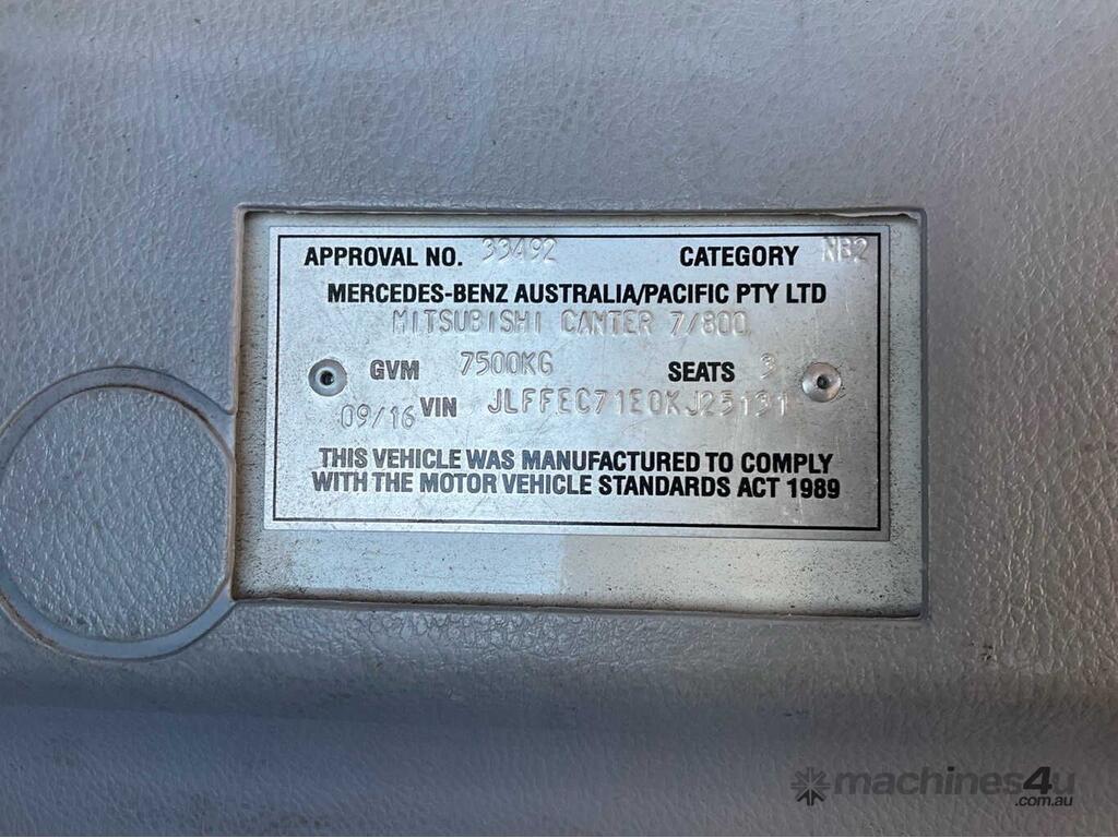 CP: 09/2016,Mitsubishi Fuso,Canter 815,Pantech,Manual,Spring,4 Cyl,Diesel,Turbo,5 Gears,223946 (Kms. Showing on Odometer),Hourmeter not visible,Colour: White,Rego. No: NP(SB95MM), Unregistered NSW,VIN: JLFFEC71E0KJ25131,Length: 6.7 m,GVM: 7500,Sold with No Plates,WOVR Status: WOVR N/A,Incident Type: Not Applicable