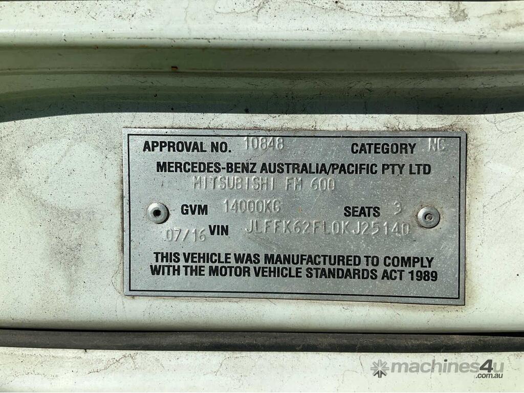 CP: 07/2016,Mitsubishi Fuso,Fighter 1424,Cab Chassis,Manual,Spring,Engine #: 6M60219009,6 Cyl,Diesel Turbo,6 Gears,716424 (Kms. Showing on Odometer),Hourmeter not visible,Colour: White,Rego. No: NP(CJ69ZT), Unregistered NSW,VIN: JLFFK62FL0KJ25140,Key No: 582S,Length: 8.6 m,GVM: 14000,GCM: 20000,Sold with No Plates,Key No: 582S