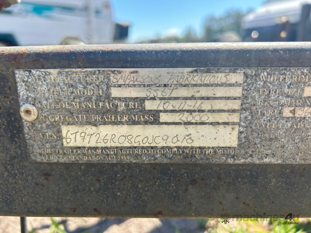 CP: CIRCA 2016,Parsons,Tandem Axle Plant Trailer,0 (undefined),Colour: Grey,Unregistered NSW,VIN: 6T9T26R08G0JC9010,Sold with No Plates,WOVR Status: WOVR N/A,Incident Type: Water