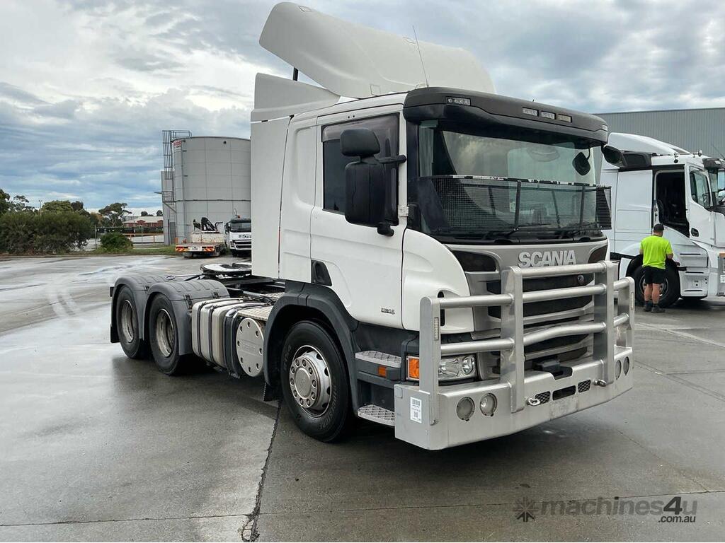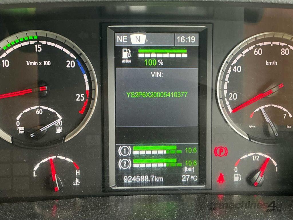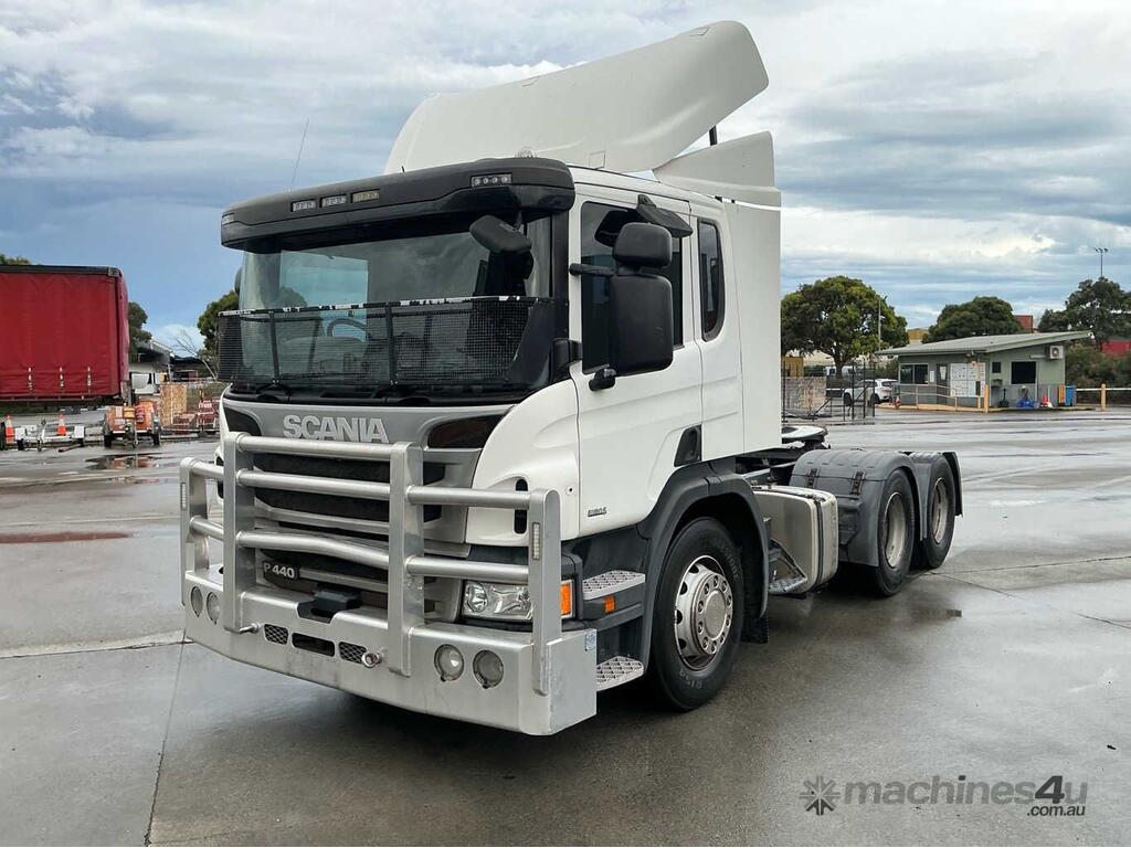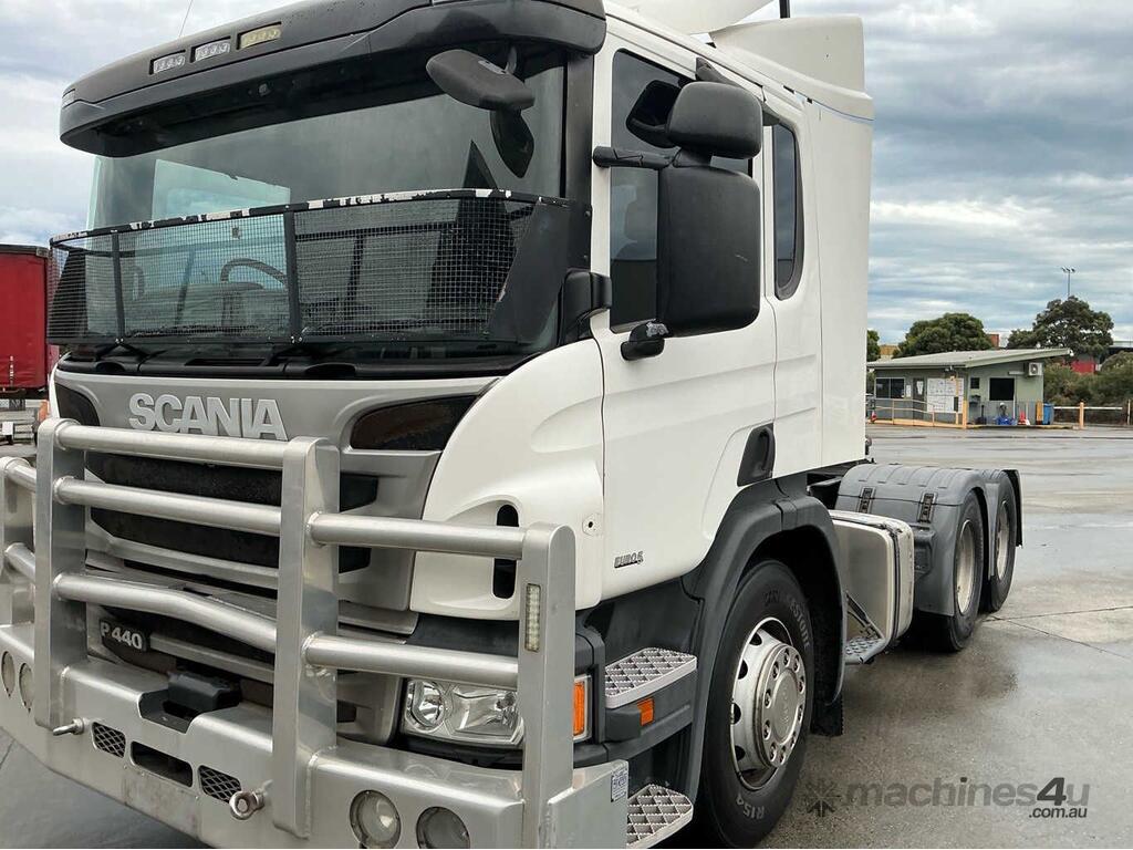 CP: 03/2016,Scania,P440,Prime Mover,Automatic,Airbag,Engine #: 6917398,6 Cyl,Diesel,924587 (Kms. Showing on Odometer),15261 (Hrs. Showing on Hour meter),Colour: White,Rego. No: NP(XW07MG), Unregistered,VIN: YS2P6X7,Key No: 299,Length: 6.4 m,GVM: 26100,GCM: 60000,Sold with No Plates,Key No: 299
