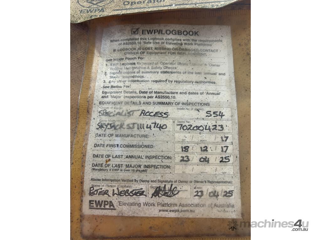 2016 Skyjack SJ111-4740 Scissor Lift :      $11,500 AUD($12,650 Inc. GST)
