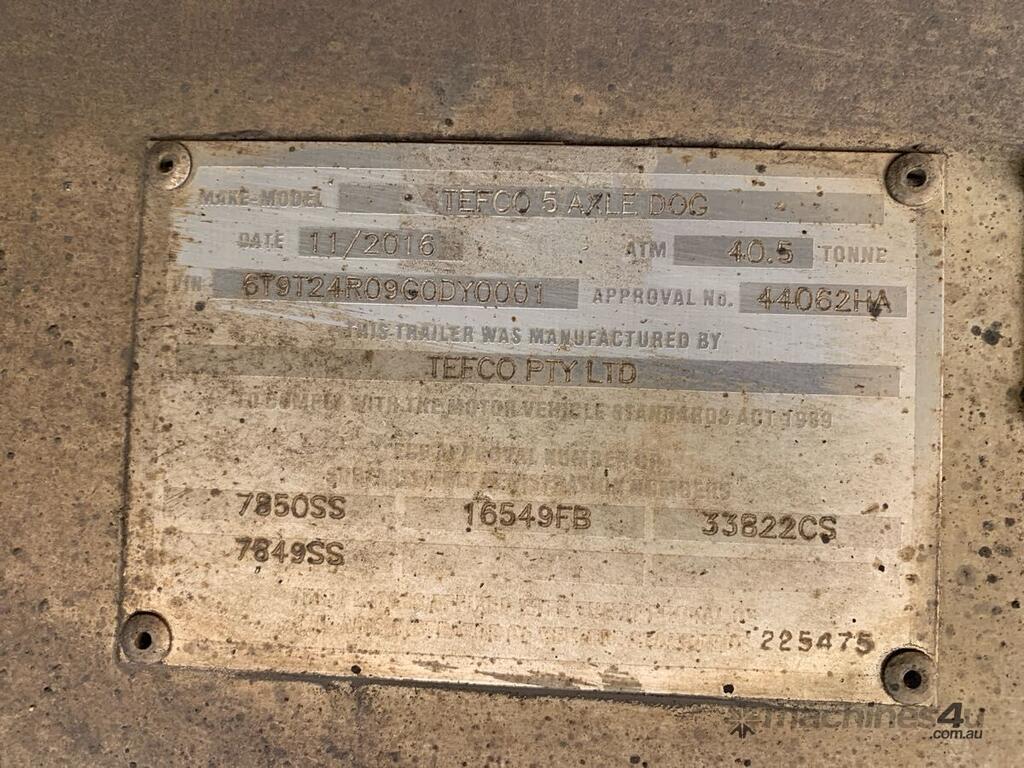 CP: 11/2016,Built: 11/2016,Tefco,5 Axle Dog,Quin Axle Super Dog Tipping Trailer,Hubometer not visible,Rego. No: NP(YO62AE), Unregistered NAT,VIN: 6T9T24R09G0DY0001,Sold with No Plates
