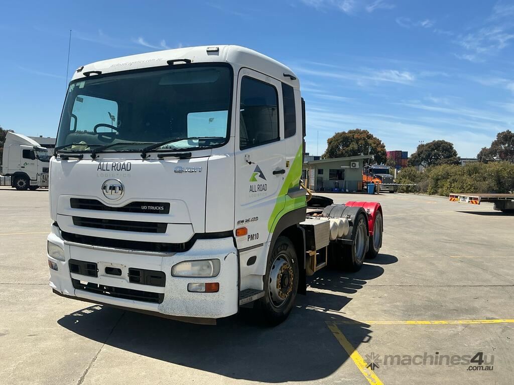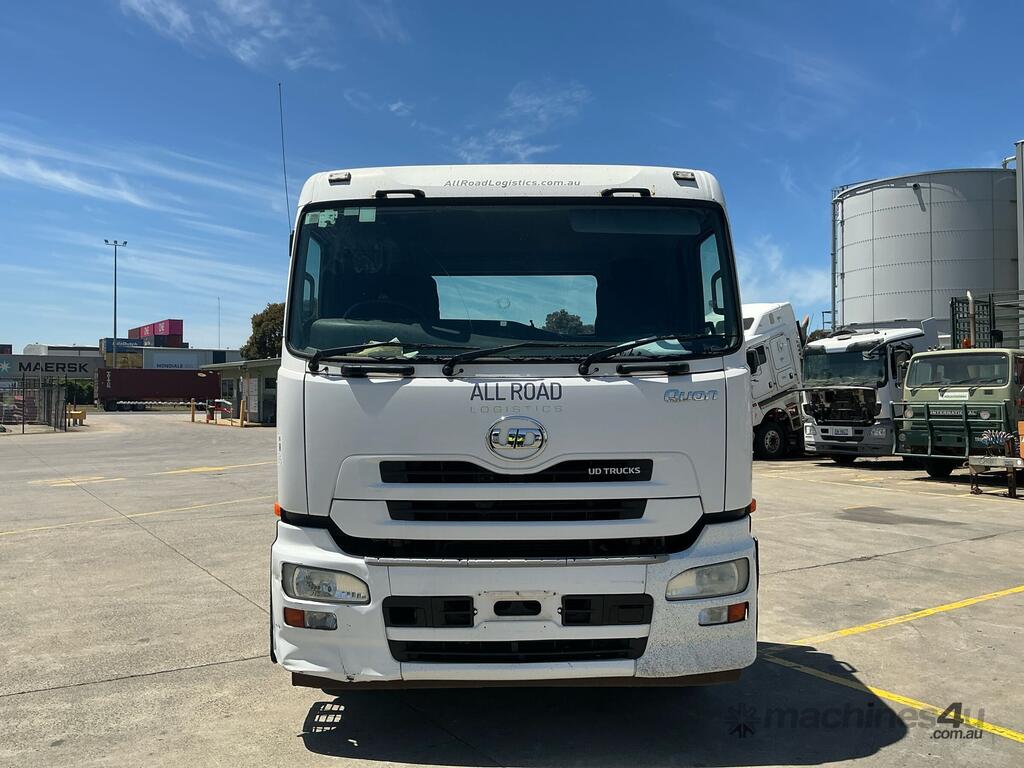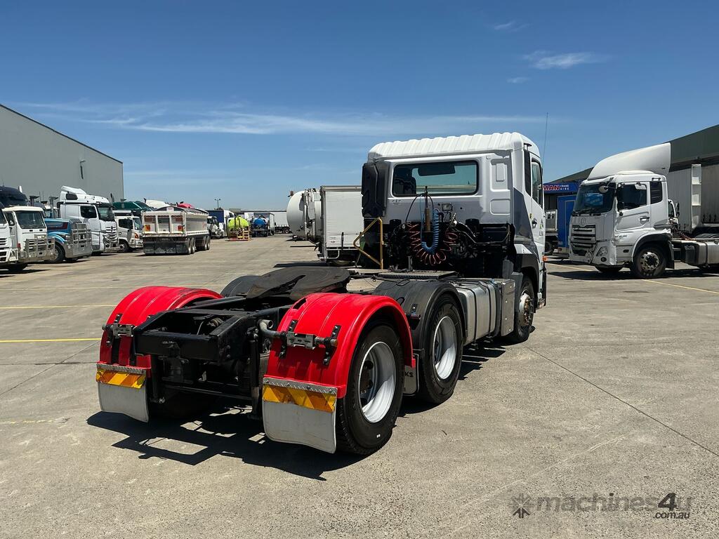 CP: 10/2016,UD,Quon CW 25 360,Prime Mover,Manual-Automatic Clutch,Air Bag Suspension ,Engine #: 734518,UD GH11,6 Cyl,Diesel,550467 (Kms. Showing on Odometer),15963 (Hrs. Showing on Hour meter),Colour: White,Rego. No: NP(1JJ1AB), Unregistered,VIN: JNCM1F1DXGU005934,Key No: 135,GVM: 26000,GCM: 55000,Sold with No Plates,Key No: 135