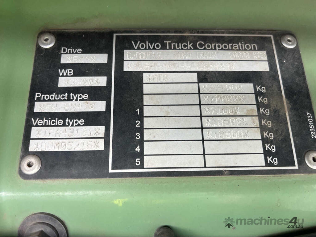 CP: 05/2016,Volvo,FH Series,Prime Mover Sleeper Cab,Automatic,Airbag,D13,6 Cyl,Diesel,1491575 (Kms. Showing on Odometer),Hourmeter not visible,Colour: Green,Unregistered,VIN: YV5RG40D6GD203404,Key No: 284,GVM: 28100,GCM: 90000,Sold with No Plates,Key No: 284