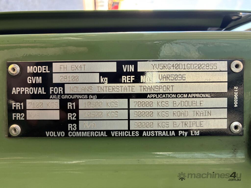 CP: 01/2016,Volvo,FH Series,Prime Mover,Automatic,Airbag,6 Cyl,Diesel,1511112 (Kms. Showing on Odometer),Hourmeter not visible,Colour: Green,Unregistered,VIN: YV5RG40D1GD202855,Key No: 291,GVM: 28100,GCM: 90000,Sold with No Plates,Key No: 291