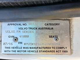 CP: 07/2016,Volvo,FMX Series,Cab Chassis,Automatic,Spring,6 Cyl,Diesel,234472 (Kms. Showing on Odometer),Hourmeter not visible,Colour: White,Unregistered,VIN: YV5X1E1G3GD203609,Key No: 12,GVM: 41000,GCM: 60000,Sold with No Plates,Key No: 12