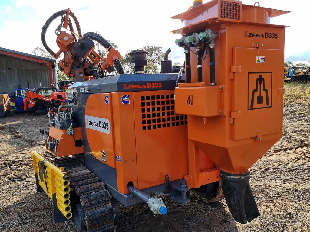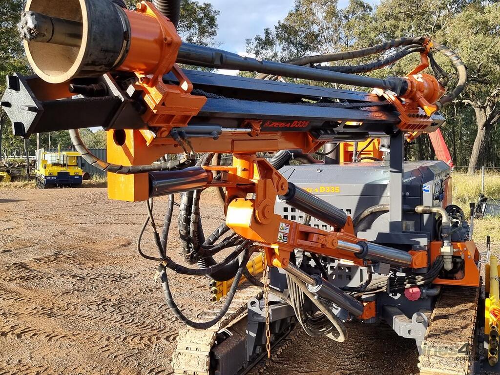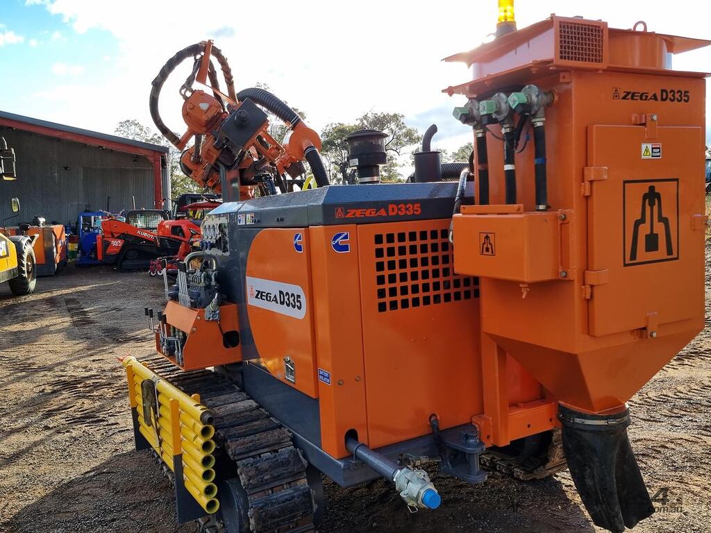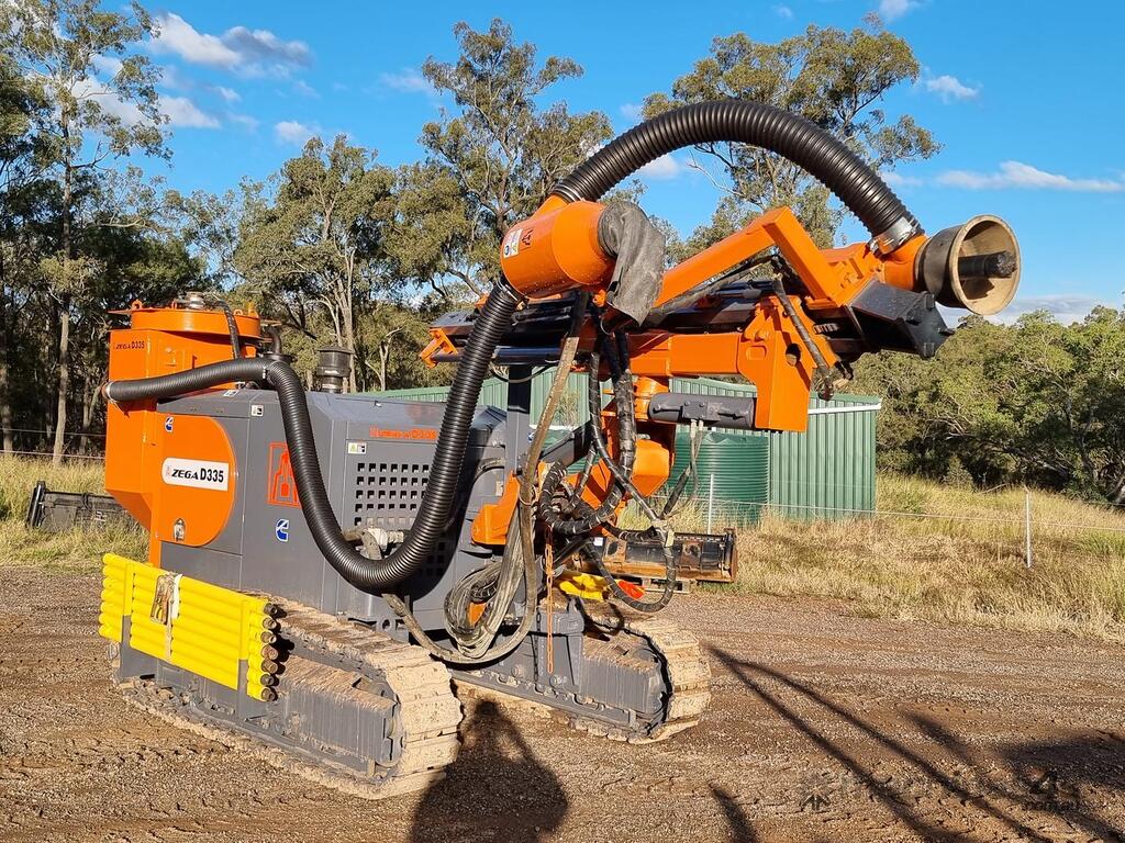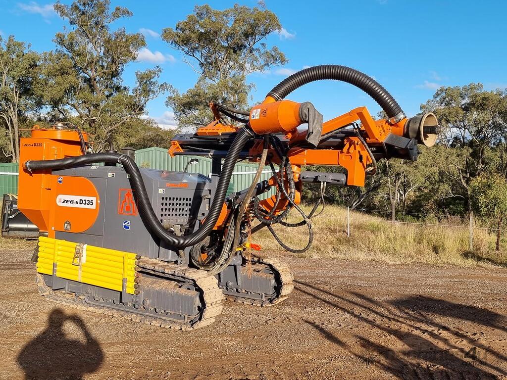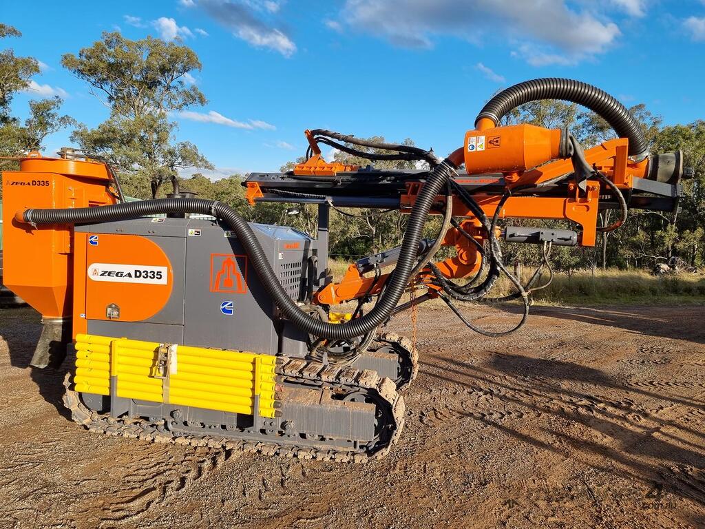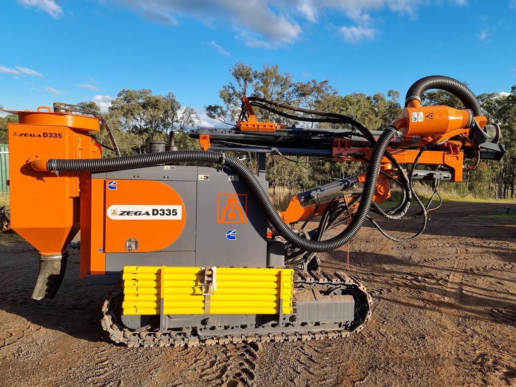 ZEGA Down the Hole Hammer D335 DTH Drill RIG, Track Drive / Track Mounted, Powered by 3.9L 60Kw 4Cyl Turbo DCEC 4BTA3.9-C80-II CUMMINS Diesel Engine, Drill SMU/Tacho Unit showing 347hrs. Includes Spare Drill Rods, Connecting Hose And Accessories, Unit is fitted with Racks Containing 12ea x 1500mm Drill Rods mounted OnBoard and a further 11ea x 1500mm Rods on Pallet with Bull Hose and Tool Box Containing Spares ,Accessories & Drill Bits,