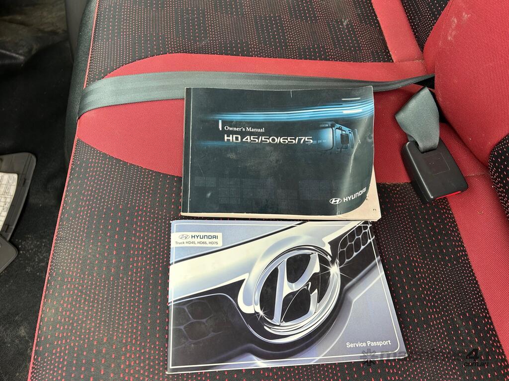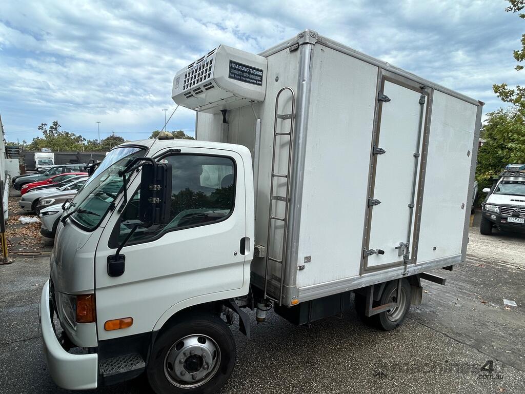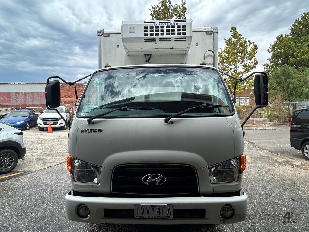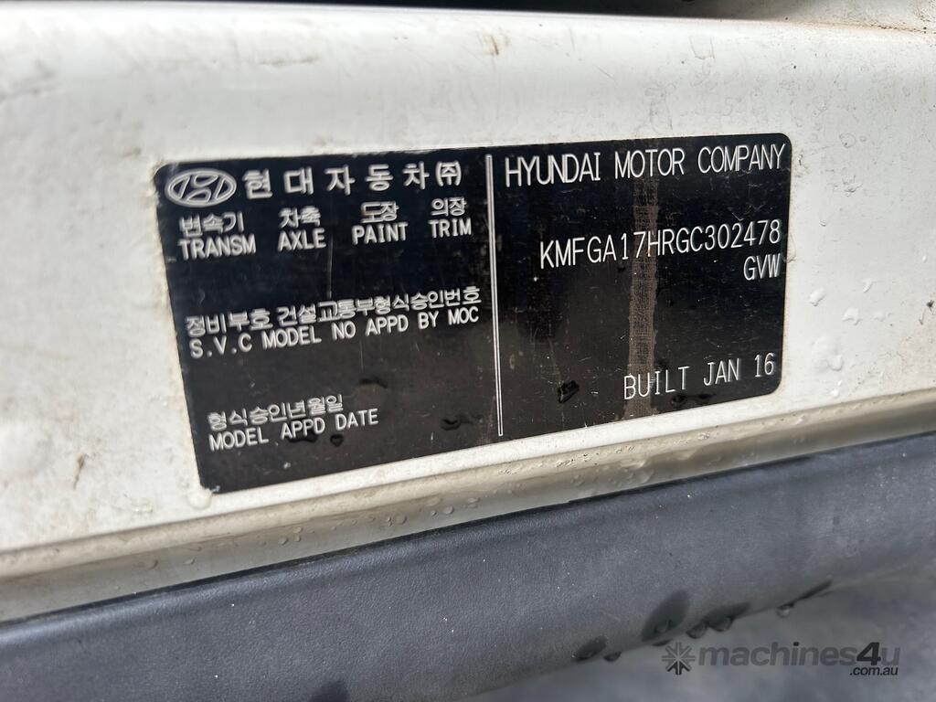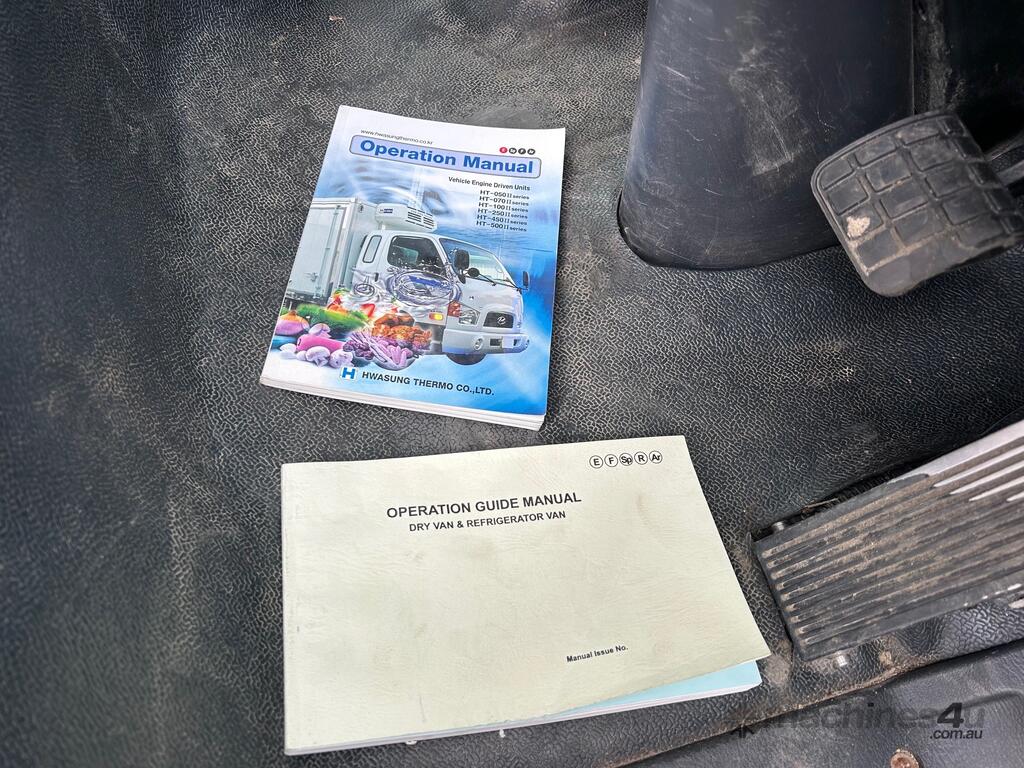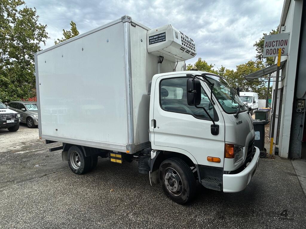 1/2016 (built) ,7/2016 (complied) Hyundai VT-1 HD45 4x2 cab chassis, 3 seater, powered by a 4 cylinder turbo diesel engine, 5 speed manual transmission, full electrics , reverse camera mirror, fitted with a 3mt refrigerated body, HWA Sung HT-250ESC refrigeration unit, twin fan condenser, steel chequer plate floor, rear barn doors, side access door, owners book, 1 x key REG: 1VV4FA KLM: 192135 ( showing ) VIN: KMFGA17HRGC302478 ENG: D4EAFJ190175 GVM: 4500kg PLEASE NOTE: This vehicle will be sold without plates and not registered.