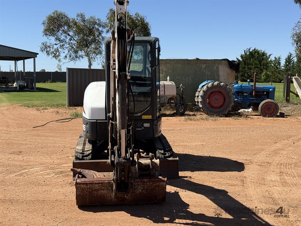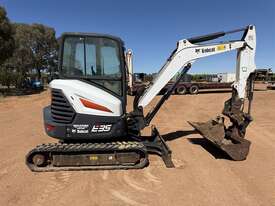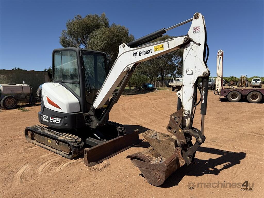 2017 BOBCAT EXCAVATOR E35i Serial no. B3Y211393. Minimal swing excavator, 3074hrs, rubber tracks, air conditioned cab (not operating), quick hitch (has electrical issue works intermittently). Attatchments include ripper, blade, 450mm bucket and 1.0m mud bucket. Located Robinvale VIC.