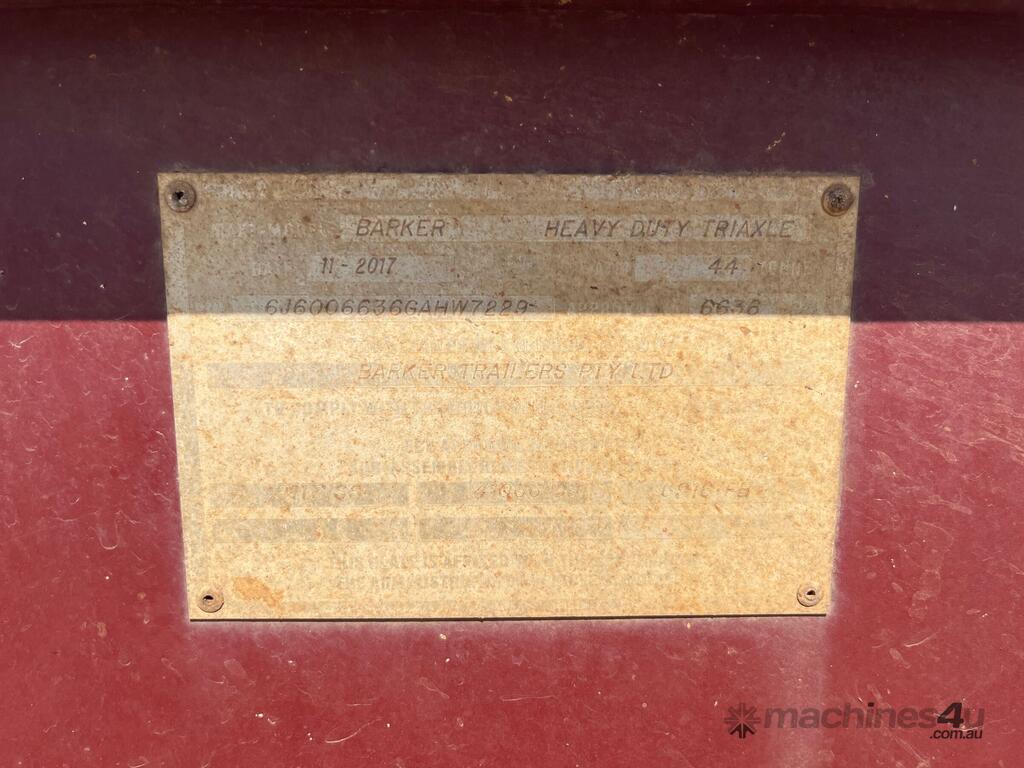 CP: 11/2017,Barker,Heavy Duty Tri Axle,Tri Axle Skel Trailer,Hubometer not visible,Colour: Maroon,Rego. No: NP(413UFW), Unregistered,VIN: 6J6006636GAHW7229,Sold with No Plates