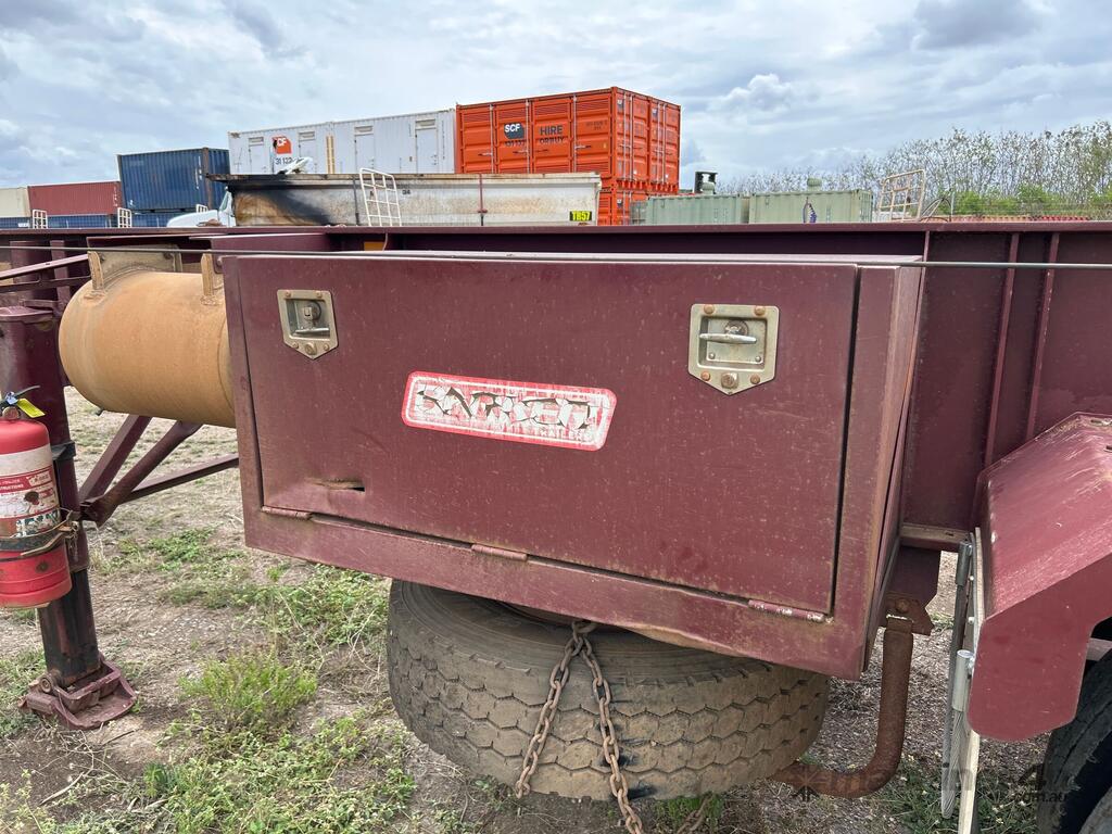 CP: 11/2017,Barker,Heavy Duty Tri Axle,Tri Axle Skel Trailer,Hubometer not visible,Colour: Maroon,Rego. No: NP(401UFW), Unregistered QLD,VIN: 6J6006636GAHW7227,Sold with No Plates