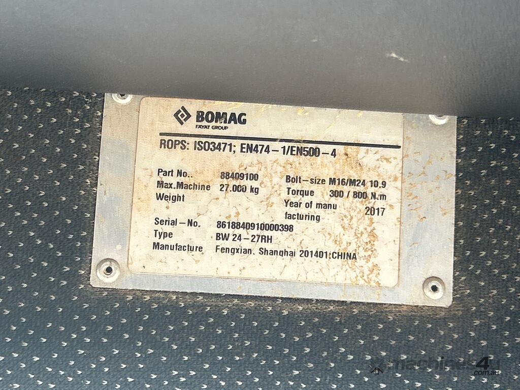 CP: CIRCA 2017,Bomag,BW27RH,Multi Tyred Roller,4 Cyl,Diesel,Odometer not visible,4121 (Hrs. Showing on Hour meter),Unregistered,Serial No: 19,Sold with No Plates,Key No: 118