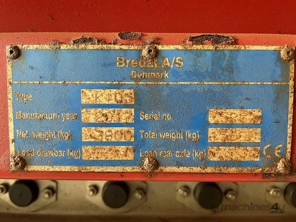 2017 Bredal K105XE Spreader, 13.4m3, hydro drive, extension wings for spreading discs, Stainless Screen Inside, H Fertilizer Discs, ISOBUS Dynamic Weighing System, Extended Spinner System, 750/60R30.5 Tyres- one 95%, one 70%, Mudguards, 3m Axle, Roll Tarp.