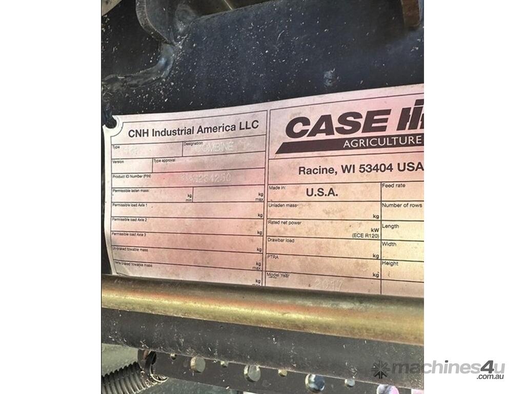 2017 CASE IH 8240 Combine. Suspended Tracks, Rock Trap, Straw Chopper, Well maintained by owner from new, Case IH GPS - Na II Controller & 372 Receier, Pro 700 Screen, Auger Extension, In cab folding grain tank lids, UHF, Radio, Spotlights. Located Moree, NSW. Available at MRE Auctions.