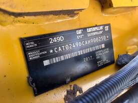 CP: CIRCA 2017,Caterpillar,249D,Skid Steer (Rubber Tracked),Diesel,Odometer not visible,3165 (Hrs. Showing on Hour meter),Colour: Yellow,Unregistered,Serial No: CAT0249DCAH900250,Sold with No Plates
