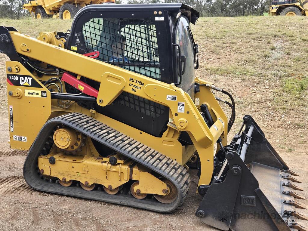 CAT 249D Skid Steer Loader Fitted with CAT P/No. .37m3 MultiPurpose 4in1 Bucket, Air Conditioned Cab , Aux Hydraulics, TFT Screen with Intergrated Reverse Camera, 14 Pin Work Tool Connector Plug, Fitted with Genuine CAT 400mm Wide MultiBar Tracks, $58.5k+Gst Unit will Include the Front Window Door Lexen Replaced, Includes Operators & Maintenance Manual, Will Include Service or Supplied with Genuine CAT Filter Kit